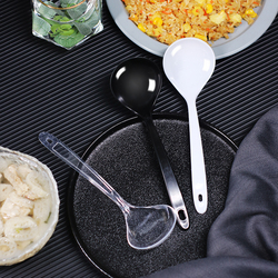 Cuchara de sopa de cocina japonesa desechable de venta directa de fábrica cucharas de servicio de plástico negro/blanco de peso pesado Industrial para alimentos